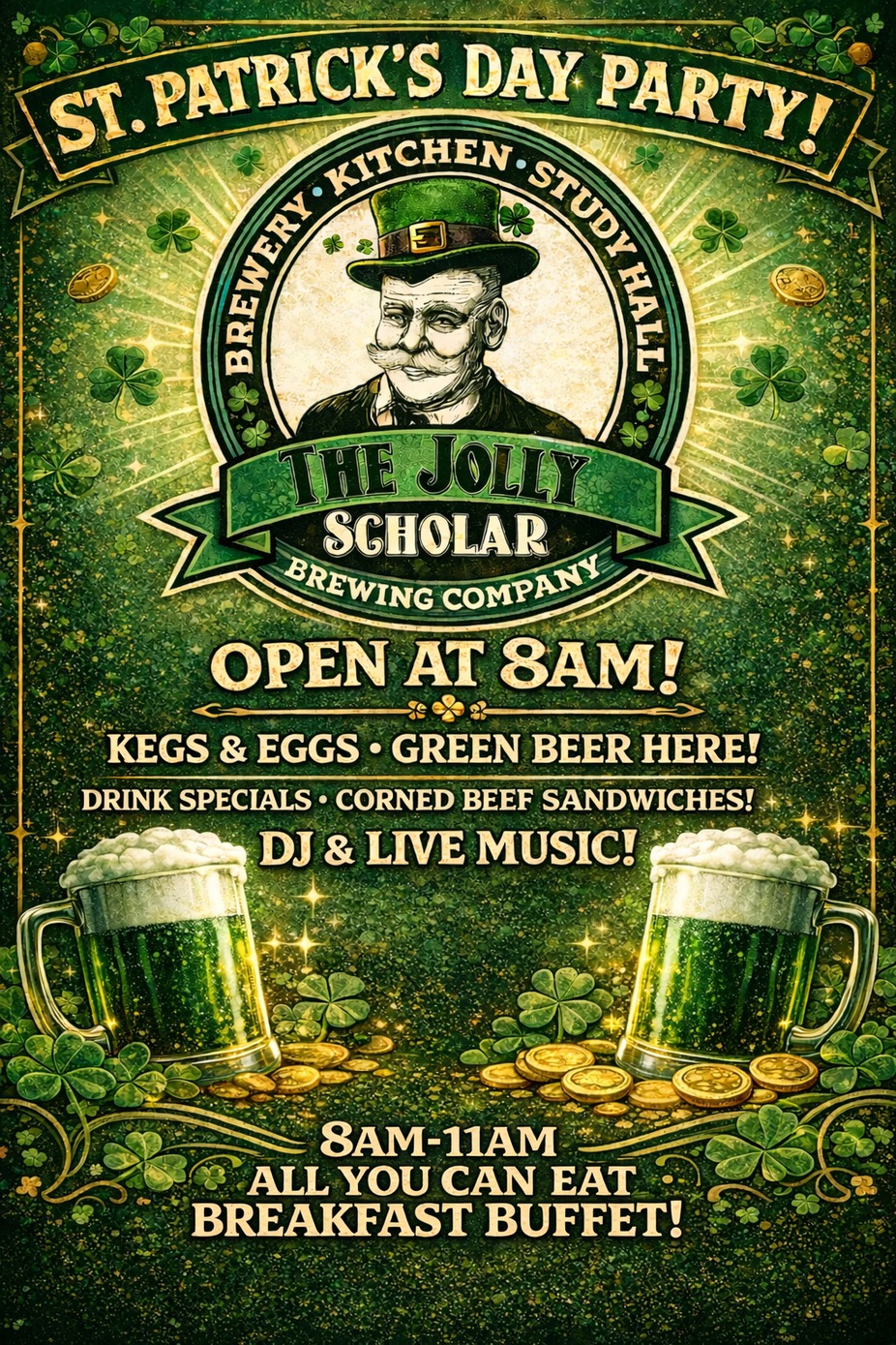 Grab your best green garb and join us for St. Patrick's Day! All you can eat Breakfast 8am-11am. Food & Drink Specials all day. DJs & live music all day! #getjolly